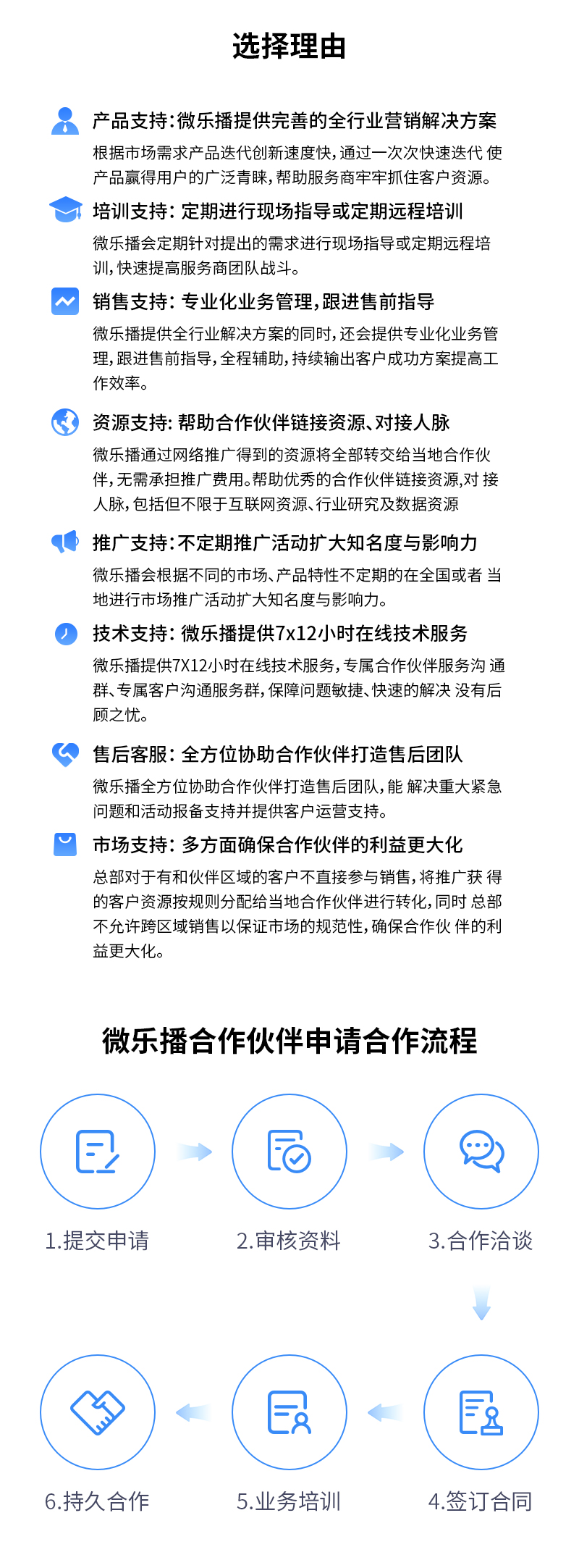 微乐播也为合作商提供了数字化管理体系,方便客户更加 便捷的管理自己所经营的平台。同时提供数据管理后台方 便合作商户更加全面了解运营,财务数据。